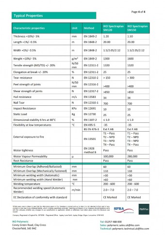 Spesifikasi Teknis IKO Spectraplan TPE (Berdasarkan TDS)